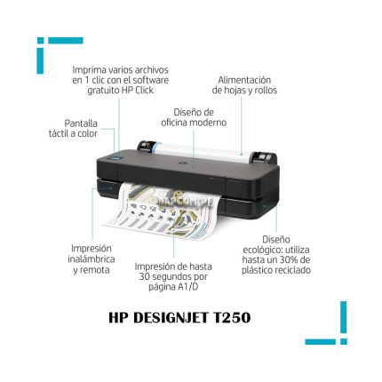 El precio original era: S/1,600.00.S/1,455.00El precio actual es: S/1,455.00.Impresora Plotter HP Designjet T250 24IN 5HB06A