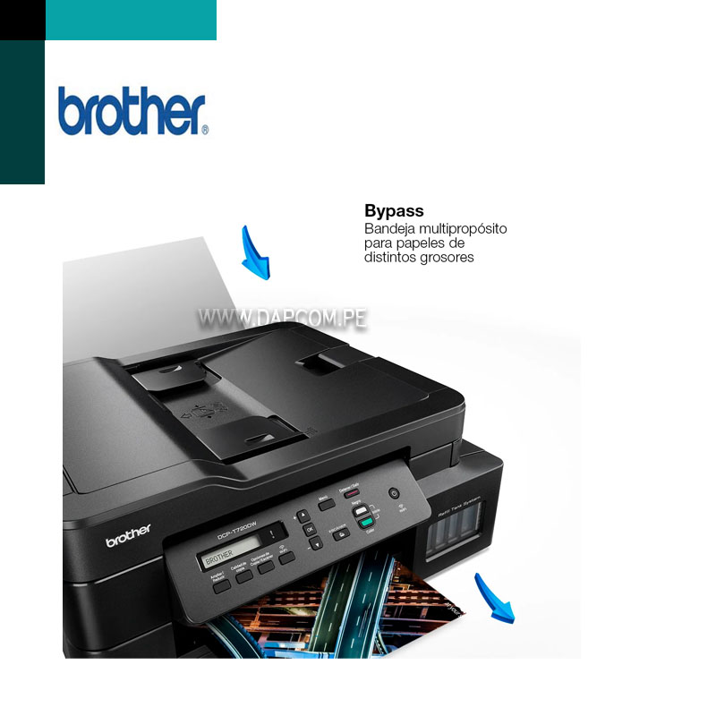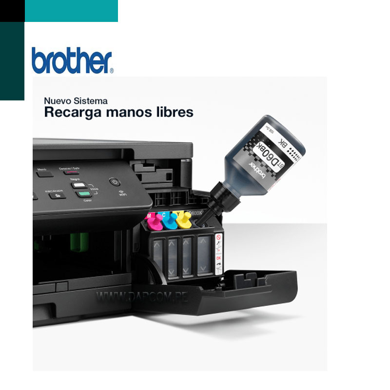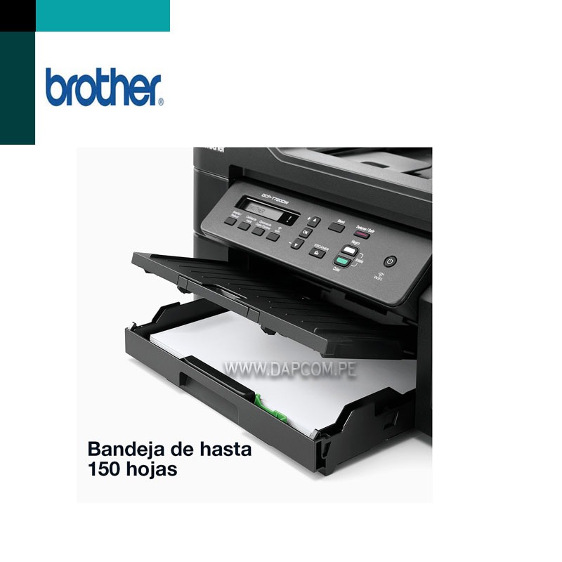 Impresora Multifuncional Brother DCP-T720DW, tiene un nuevo diseño de llenado de tinta automático que ayuda a reducir derrames. Impresión económica y de alta calidad para documentos comerciales, informes, fotos y más. Menor tiempo de espera con la impresión dúplex (por ambas caras) automática y velocidad de impresión de hasta 30 ppm en negro y 26 ppm a color (ECO MODE) y de hasta 17 ipm en negro y 16 ipm a color (ISO/IEC 24734).