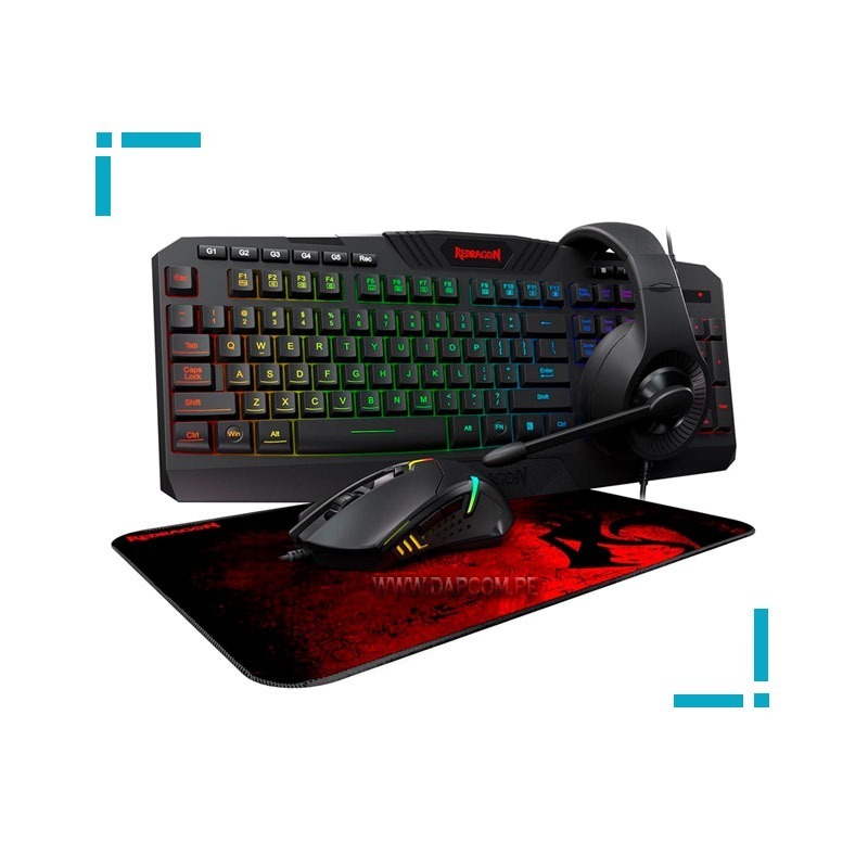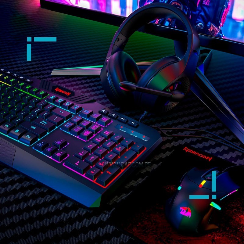 Este es el Kit de valor Redragon (todo-en-uno) para el gamer: Incluye un teclado para juegos con retroiluminación RGB, mouse para juegos con retroiluminación RGB, auriculares para juegos y pad gamer para mouse (De textura impermeable y lisa). El regalo perfecto para el gamer de estos tiempos.
