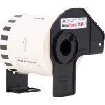 Etiquetas cortadas a medida: el rollo de etiquetas de papel continuo Brother DK2251 es de 2.4 x 50 pulgadas, lo que te permite imprimir etiquetas personalizadas en negro y rojo en papel blanco.