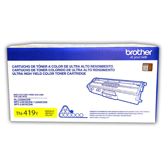 Toner Brother Tn-419Y Color Yellow Compatibilidad Hl-L8360Cdw, Mfc-L8610Cdw, Mfc-L8900Cdw, Mfc-L9570Cdw Rendimiento 9000 Paginas.