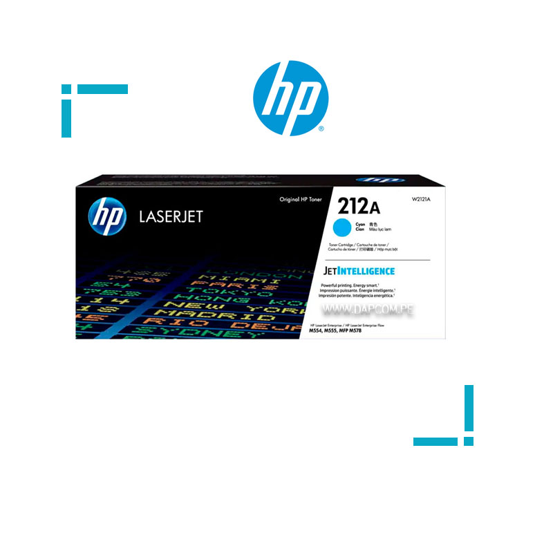 Cartucho de Toner HP W2121A modelo 212A Cyan Original con rendimiento de 4,500 páginas.