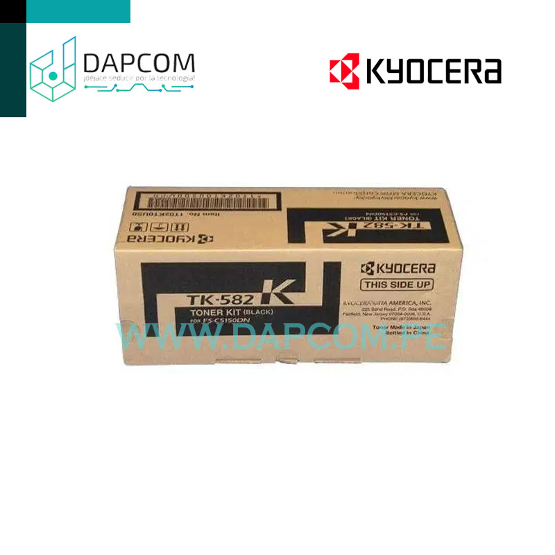 Los Cartuchos de Tóner Kyocera con sub-código de identidad TK-582K viene con un chip inteligente insertado en el cartucho TK-582K la cual contabiliza las impresiones de color Black que sé realizan, de igual manera el código del tóner se encuentra grabado en el cartucho, en modo de alto relieve el cual es TK-582K, que vendría a ser su identificador como producto de la casa Kyocera